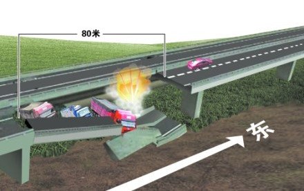 事實上,以上兩種說法完全沒法在專業上否定“煙花爆竹爆炸致橋面垮塌”的可能性。電影《橋》和茅以升炸錢塘江大橋,目的都是為了“炸橋”,是徹底毀壞橋,和“橋面局部坍塌”是兩件不可同日而語的事。所謂“炸橋”,其原理就是"失穩",炸它的承重部份,比如梁橋就炸橋墩。具體操作時,要預先機械拆除一些結構、精確炸點、打孔(因為內爆炸比外爆炸需要的藥量小多了)、埋雷管。